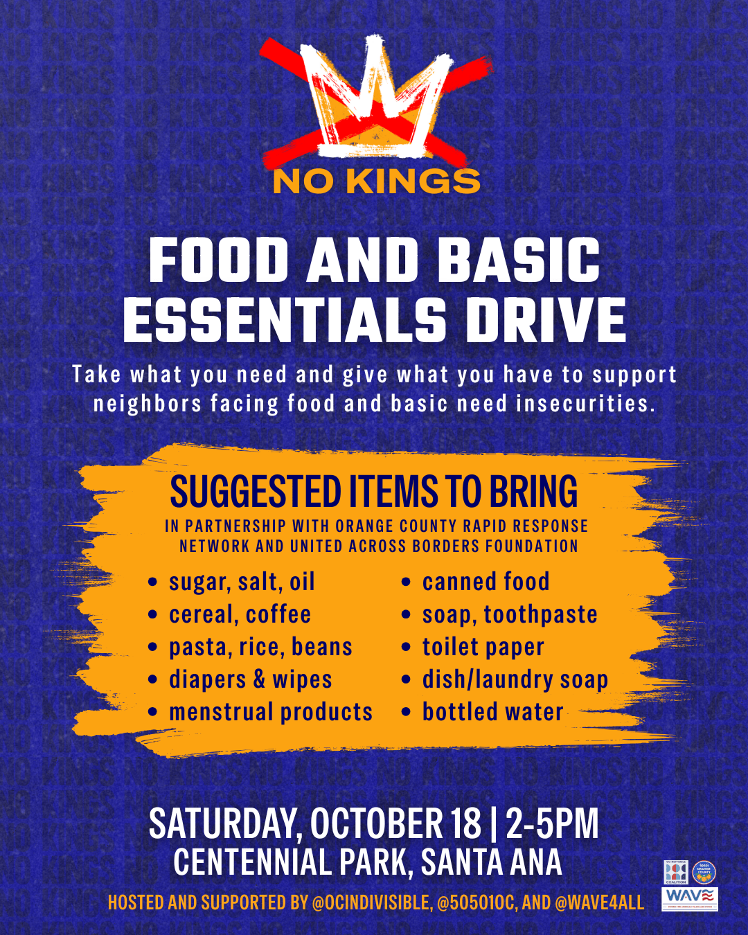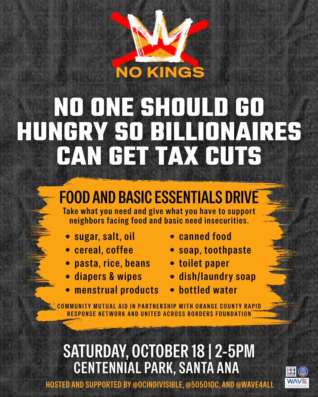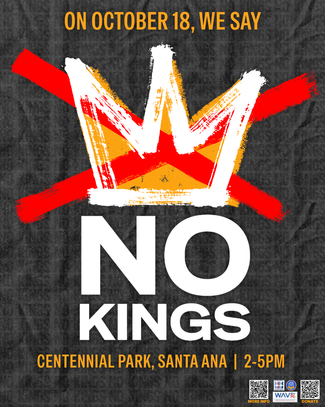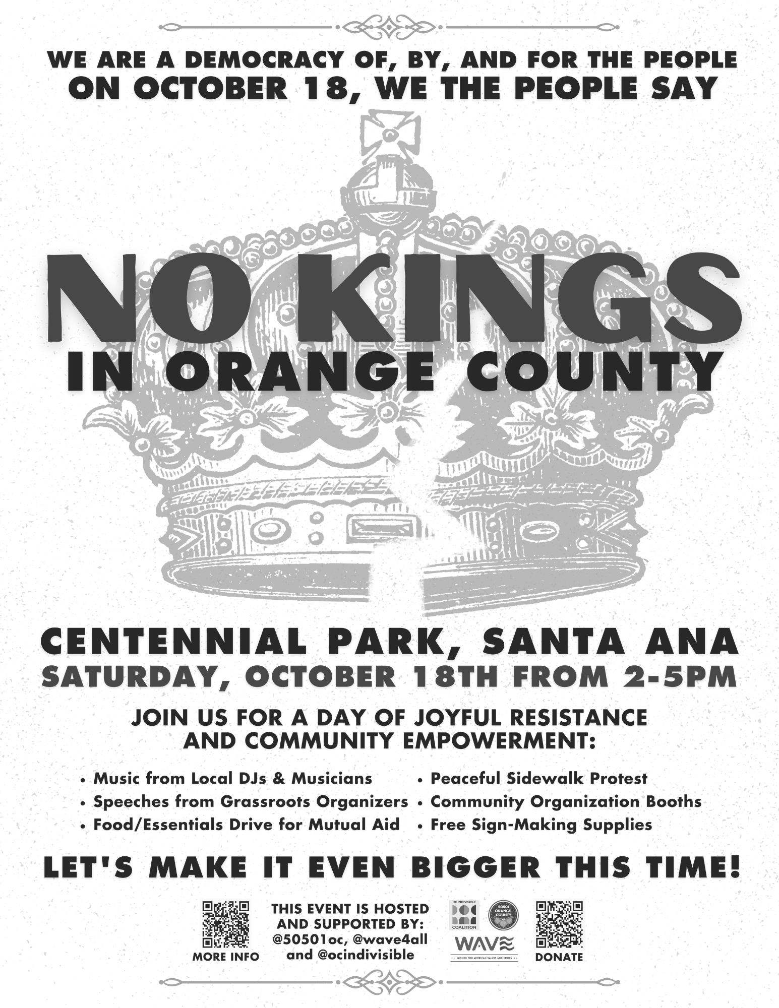 Interested in an easy way to help out? Have a printer at home? Print out some No Kings Orange County flyers and get out into your neighborhood to help us advertise the protest!